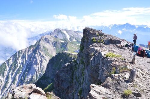 20代の前半に登って以来の白馬岳。予定していた大雪渓から栂池へ下山するコースは時間の関係で大雪渓往復に変更、駐車場満車の事態も何とか切り抜けて歩き出す。太陽の陽射しが強い山道も白馬尻小屋が見える頃には涼風を感じ、大雪渓突端で軽アイゼンを履く…