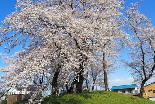 そろそろ終わりごろと思った行田のさきたま古墳公園の桜。慈雨に息を吹き返したのか青空に向かって元気な彩りを放つ。池の向こう丸墓山古墳の上に咲く桜。桜並木越しに遠く将軍山古墳は一面に菜の花を飾る。桃色と黄色の公園の一角に咲く白い花びらはオオシ…